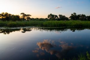 Zambezi Region, Mudumu South Complex, Camp Kwando, Kwando river, sunset